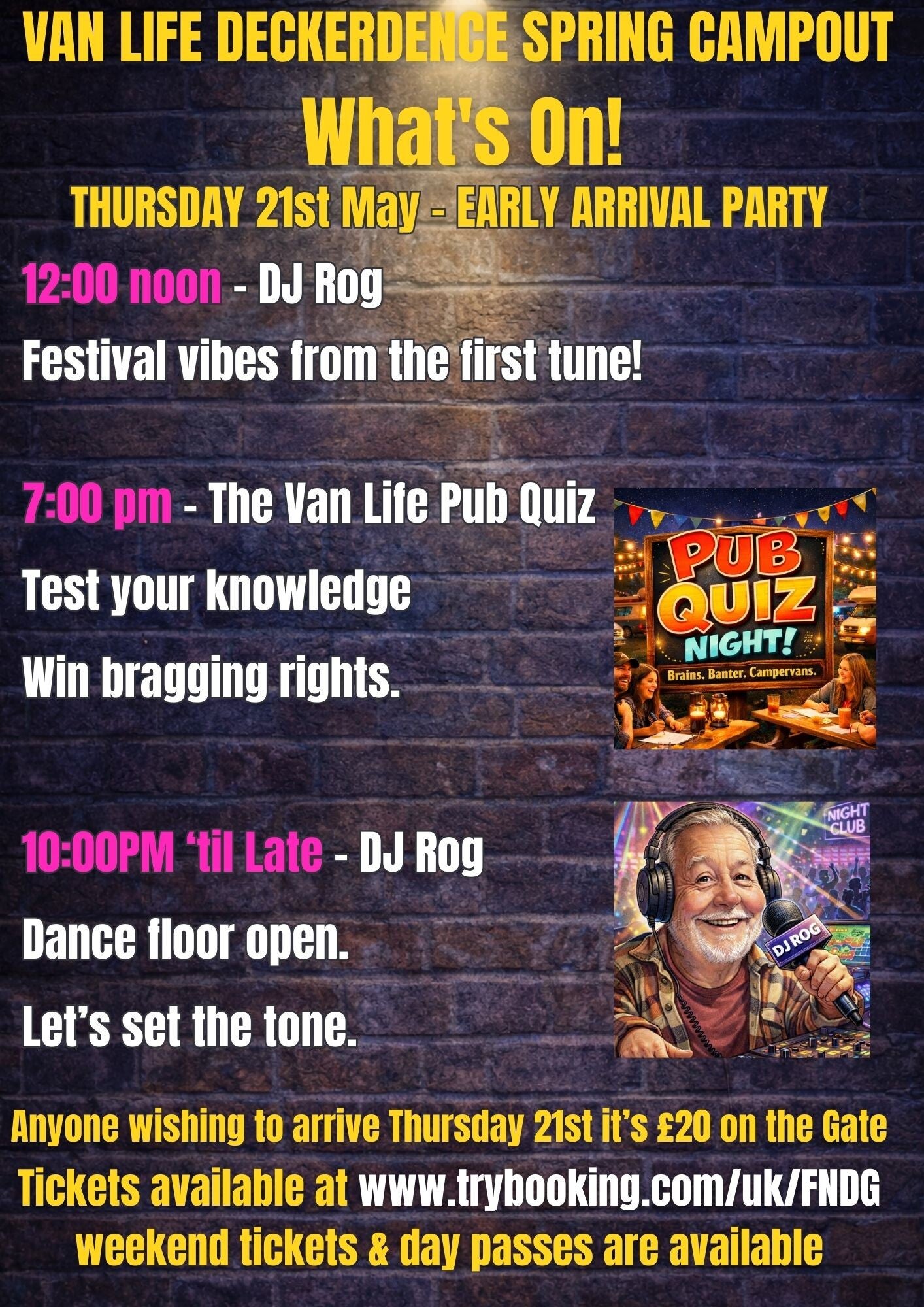 Event price is £60 Friday _Sunday, Thursday early arrival is £20 on the gate, site to be cleared by 11am on 25/05/2026